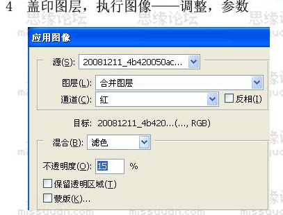 4、新建一个图层,盖印图层,再执行:图像 > 应用图像,参数设置如下图。