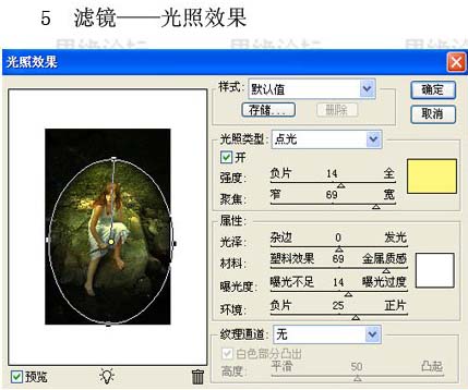 5、执行:滤镜 > 渲染 > 光照效果,参数设置如下图。