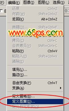 1、教程开始之前,先来定义一个背景图案,打开图所示的背景图案,选择菜单:编辑 > 定义图案,如图2,确定后可以自己随意命名。