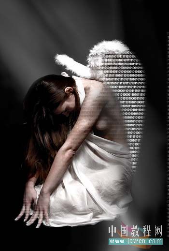 8、合并所有代码层,选择带柔角的橡皮擦工具将左侧和衣服上的代码擦除,得到如下效果。