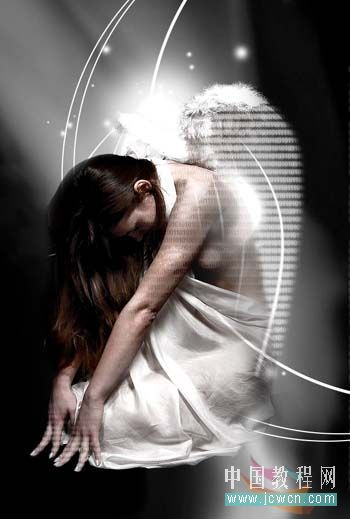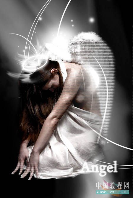 16、输入“Angel”字符,并为文字层添加外发光效果,完成最终效果。