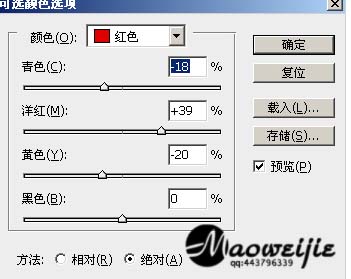 3、创建可选颜色调整图层,调整以下三个通道,完成后,人物皮肤太红,在图层蒙版上,用低透明的黑色画笔,将人物皮肤部分擦出来。。