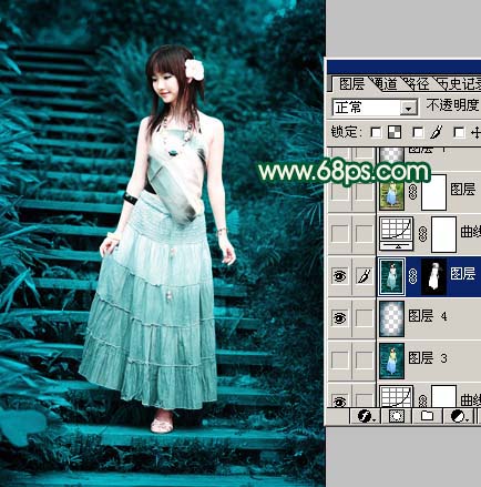 4、新建一个图层,盖印图层,点通道面板,选择绿色通道,按Ctrl + A全选,按Ctrl + C复制,点蓝色通道,按Ctrl + V粘贴,回到图层面板,加上蒙版,只保留人物部分,其它部分用黑色画笔擦掉,效果如图7。