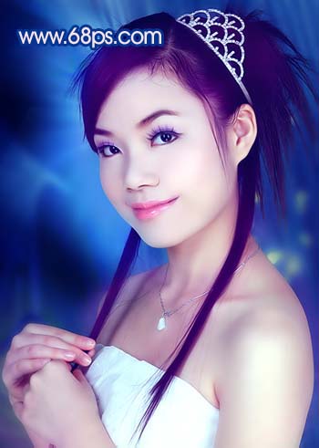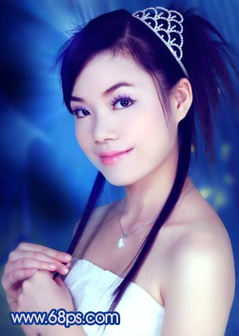原图素材为影楼拍摄效果,照片质量非常不错。不过人物脸部少了点质感。调色的目的只是尝试照片在不同的颜色下所表现的意境同。