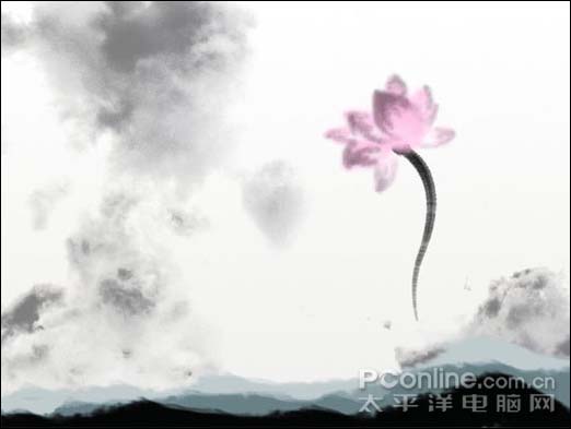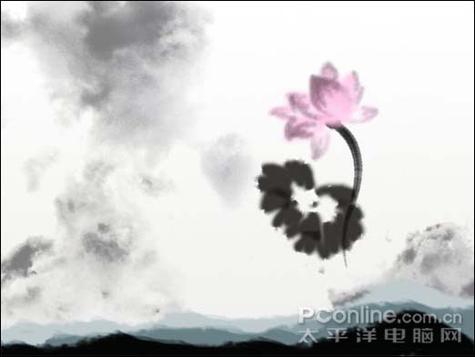 本教程介绍介绍古典艺术海报的制作方法。作者对PS非常娴熟,用滤镜制作出淡淡的背景,然后用画笔画上水墨荷花,再加上一些装饰元素,效果非常不错。