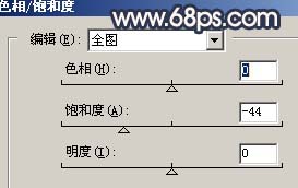 1、打开原图素材,创建色相/饱和度调整图层,参数设置如图1,效果如图2。