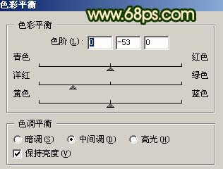 2、创建色彩平衡调整图层,参数设置如图2,效果如图3。