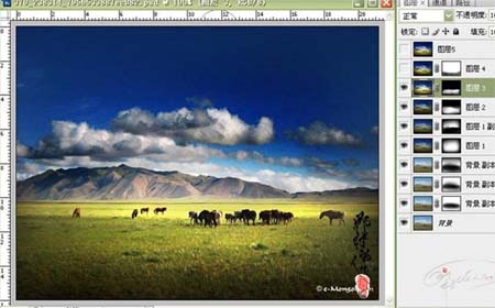 2、把刚才操作的图层复制一层,在原先蒙版的基础上继续涂抹。