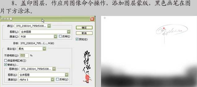 8、新建一个图层,盖印图层,执行:图像 > 应用图像操作,参数设置如下图,确定后加上图层蒙版,用黑色画笔在图片下方涂抹。