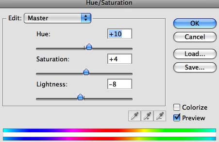 #p# 10、转到色相饱和度,改变他们,如图中所示。