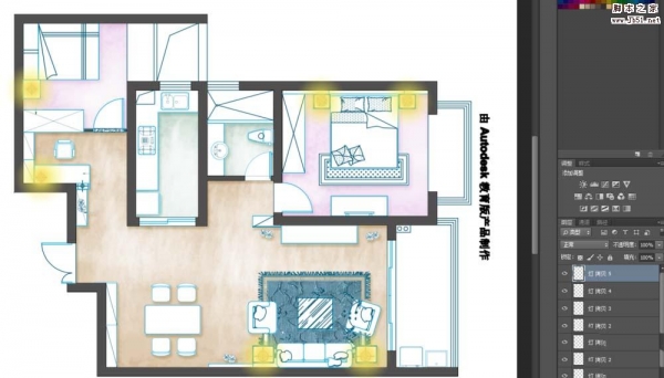 PS怎么给室内平面图上色? ps彩色平面图的制作方法