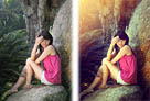Photoshop将树林美女图片调成柔和的暗调红青色