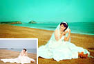 Photoshop将沙滩美女婚片调制出柔美的青黄色效果