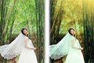 Photoshop将竹林婚片调制出漂亮的古典黄绿色效果