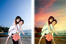 Photoshop将蓝色海景婚片调制成漂亮的晚霞阳光效果