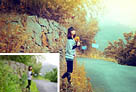 Photoshop树林人物图片调制出流行的淡雅柔美的日韩粉蓝色效果