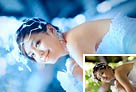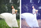 Photoshop下将偏暗外景婚片调成甜美的蓝红色