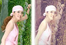 Photoshop将外景美女图片调成淡淡的粉紫色