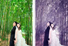 Photoshop将竹林人物图片调成柔和的蓝紫色