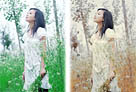 PS将绿色的外景人物图片变成古典橙褐色