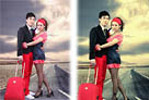Photoshop将外景情侣图片调成艳丽的青春色调