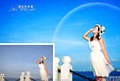 Photoshop将外景婚片调成唯美的青绿色