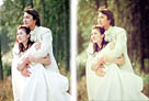 Photoshop将外景婚片调成淡淡的黄褐色