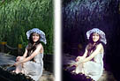 Photoshop将人物图片调成淡淡的古典黄青色