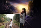 Photoshop调制出昏暗的霞光色铁路弯道上的人物图片