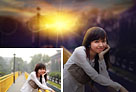 Photoshop将护栏上的人物加上漂亮的晨曦色