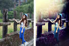 Photoshop为木桩边的美女人物加上高对比蓝黄色效果教程