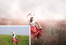 Photoshop调出为梦幻的粉色晨雾草原人物图片