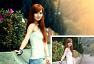 Photoshop为路边的美女加上暗调青黄色霞光色