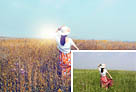 Photoshop将荒草中的美女加上清新的韩系秋季色