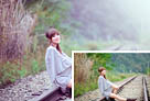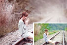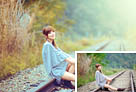 Photoshop调制出淡黄色的秋季铁轨小清新美女图片