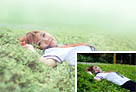 Photoshop将草地上的美女图片增加唯美的春季粉绿色