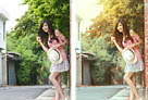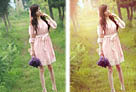 Photoshop为村道上的美女加上绚丽的秋季阳光色