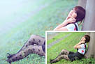 Photoshop为草地美女图片打造唯美的韩系青蓝色