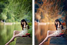 用PS给湖边的美女调出唯美黄绿色照片效果