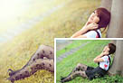 Photoshop打造甜美梦幻的青蓝色草地美女图片