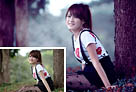 Photoshop为绿叶中的人物加上唯美的秋季橙红色