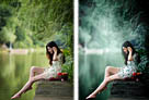 Photoshop为湖边的美女调制出童话中的梦幻青色调