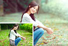 Photoshop将树林中的美女加上柔美的秋季晨曦色