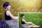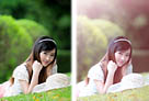 Photoshop为草地上的美女加上柔美的淡调青黄色