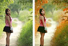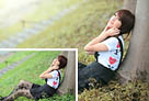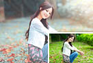 Photoshop快速为树木边的美女加上甜美的暖褐色