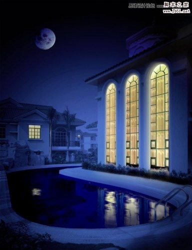 photoshop制作逼真建筑照片夜景效果实例教程