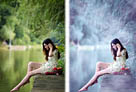 Photoshop为溪边美女图片打造梦幻的淡蓝色