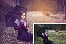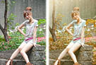 Photoshop为偏暗的郊外美女加上流行的秋季冷色调