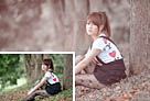 Photoshop为绿树边的美女加上古典中性淡褐色