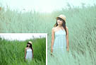 Photoshop为绿草中的美女加上甜美的淡调青绿色